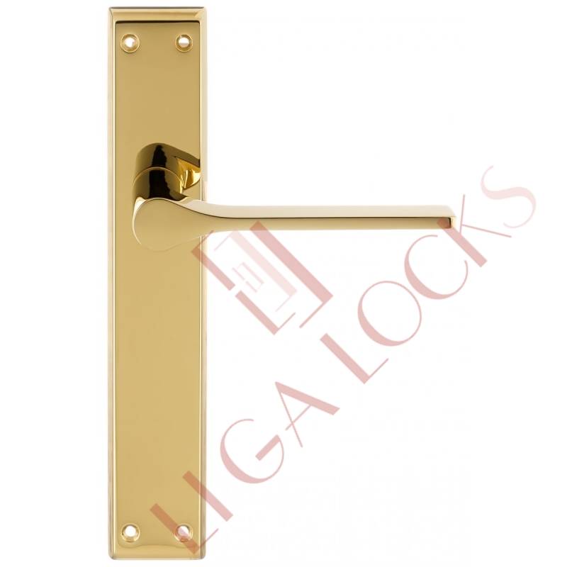 Дверная ручка Extreza Hi-Tech "LONDA" (Лонда) 131 на планке PL13 полированная латунь PVD F06 без доп. запирания PASS