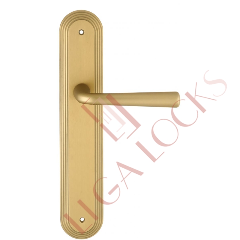 Дверная ручка Extreza "SANDRO" (Сандро) 332 на планке PL05 матовая латунь F02 без доп. запирания PASS