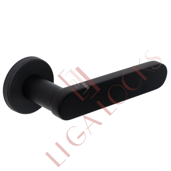 Дверная ручка Extreza Hi-tech "JEMMA" 116 на круглой розетке R12 черный матовый F22